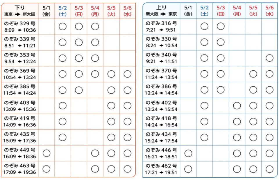 運行期間は5月1日~6日で、東京~新大阪間「のぞみ」の12号車が対象。なお「特大荷物スペースつき座席」の設定はない。