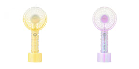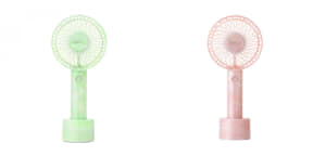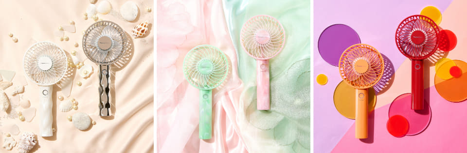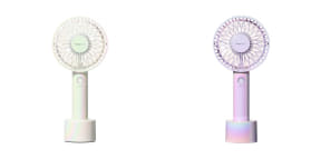 フレ ハンディファンはシリーズ累販売数700万台を突破した商品で、長時間続くパワフルな風と静音性、ファッション性の高さが特徴。卓上でも携帯型でも使えるUSB充電式になっており、付属の専用充電スタンドを使用すればデスクや洗面所、キッチンでも使える。