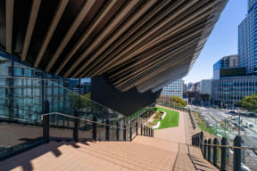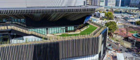 4階・5階には屋上広場と大階段を設け、HAERAとTOHOシネマズ、久屋大通公園が一体となった賑わい空間を創出。広場の大部分には人工芝が整備され、ショッピングや映画鑑賞などの合間に久屋大通公園の眺望を楽しみながらくつろげるという。