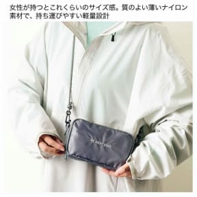 生地はナイロン素材の軽量設計で、ボディとショルダー紐のカラーは刺繍ロゴが映えるチャコールグレーを採用。スノーピークらしいソリッドなデザインが、普段のファッションにも合わせやすい。
