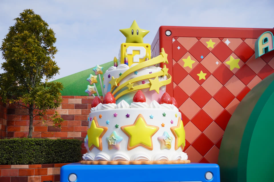 テーマは“We are all STARS!(みんなスターだ!)”。マリオのゲームでおなじみ“無敵”状態になれるアイテム「スーパースター」にちなみ、土管のあるエリア入り口には、スターをトッピングした巨大なアニバーサリーケーキの装飾が登場する。