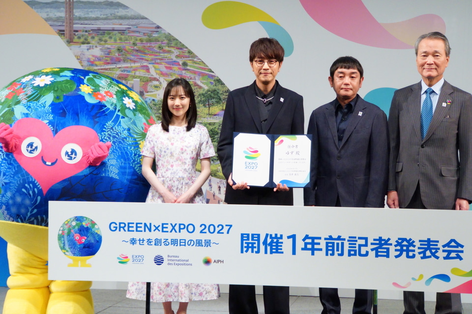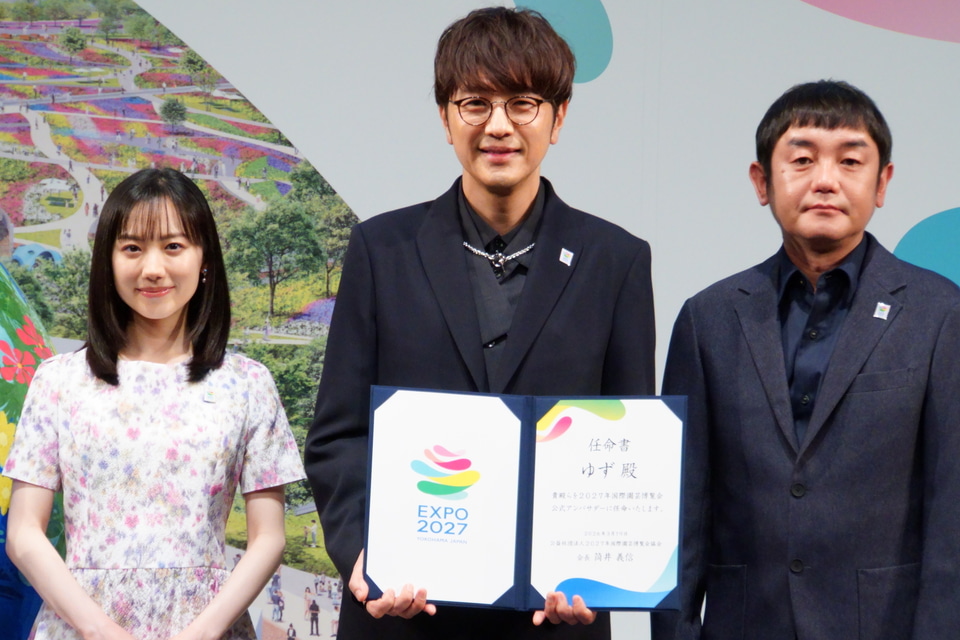 GREEN×EXPO協会は、3月19日に「GREEN×EXPO 2027 開催1年前記者発表会」を開催。新たな公式アンバサダーとして、横浜出身のフォークデュオ「ゆず」北川悠仁さん・岩沢厚治さんが就任し、コラボレーションソングを制作すると発表した。