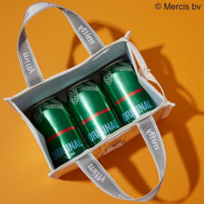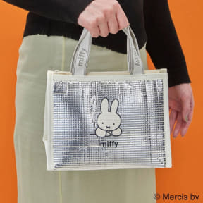 保冷効果のあるアルミ素材に描いた、ランチライムが待ち遠しそうなミッフィーが愛らしく、持ち手にあしらったロゴもポイントになっている。春夏のピクニックやレジャーにも使える。