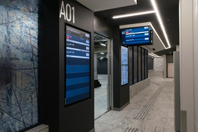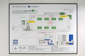 要所には大型のサイネージを設置していて、発車時刻と乗り場が一覧できるようになっている。まるで空港にいるような雰囲気がある。また、今回の開業にあわせて各エリアのナンバーサイン(バース番号)を「A/B/Cエリア表記+番線」に統一したとのこと。利用時にはエリアを間違えないように気をつけてほしい。