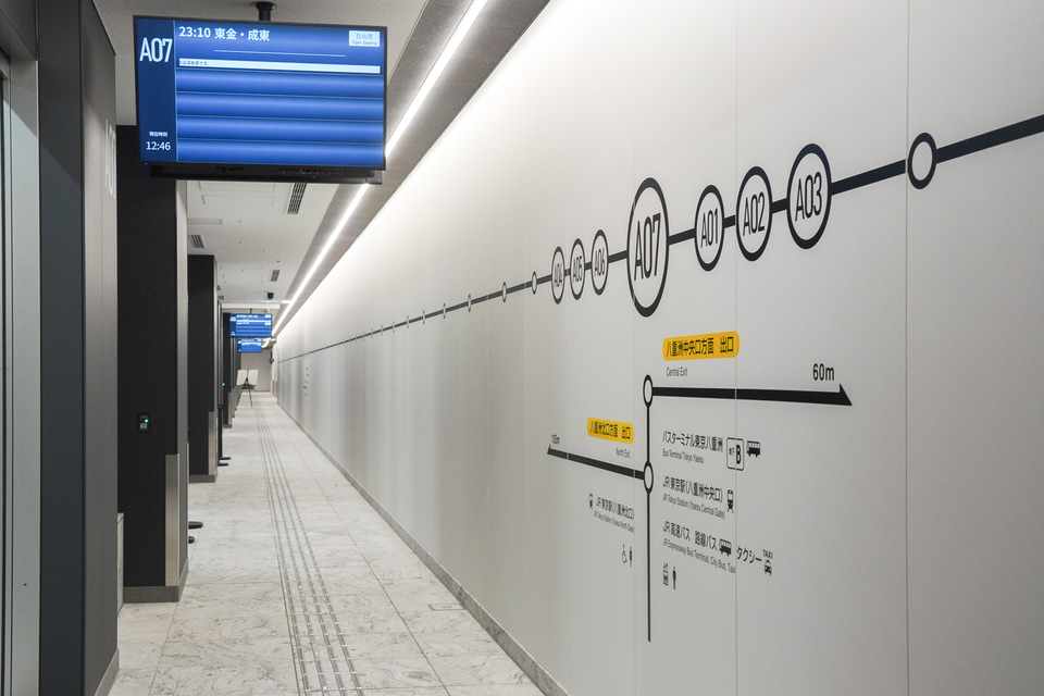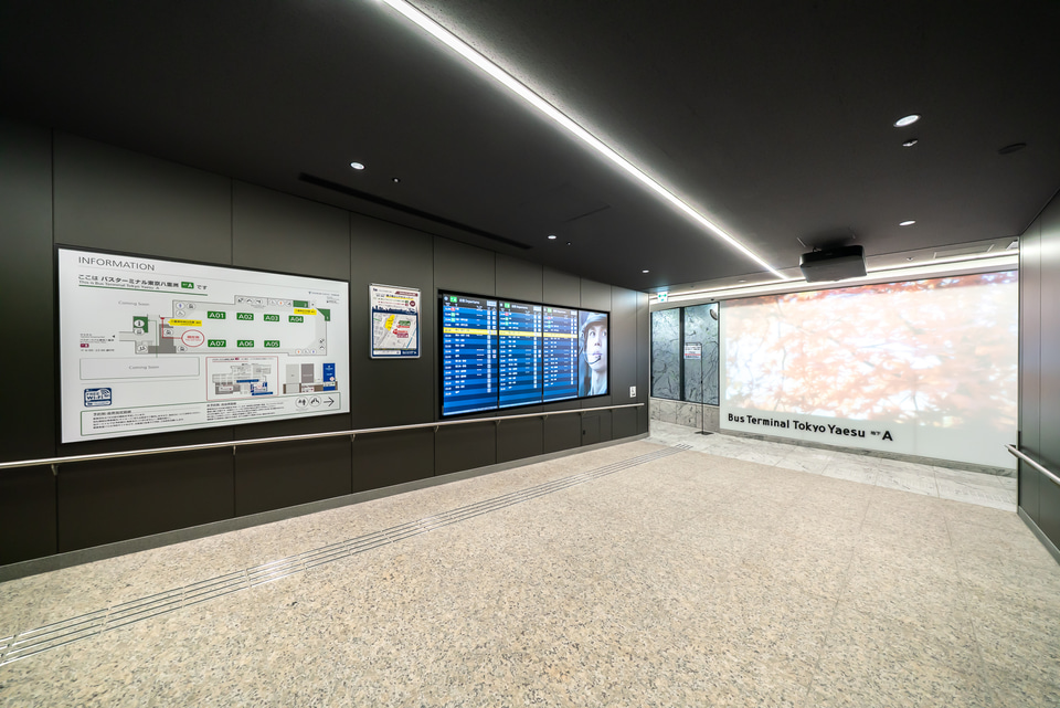 この地下Aエリアは、地上51階建ての複合ビル「TOFROM YAESU TOWER(トフロム ヤエス タワー)」(東京都中央区八重洲1-6-1)の地下階となっていて、すでに2022年9月に開業済みの第1期(地下B)エリアは東京ミッドタウン八重洲の地下にあり、乗降用バースはあわせて13バースまで拡大する。