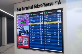 JR東京駅の八重洲中央口から出て八重洲地下街に進んでいくと、左側に第2期(地下A)エリアが、右側に第1期(地下B)エリアが広がっている。さらに2029年には、地下Bエリアの横に接続する形で第3期(地下C)エリアの開業を予定していて、エリア全体開業時には国内最大級の乗降用20バースを持つバスターミナルとなる。