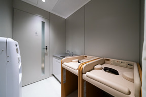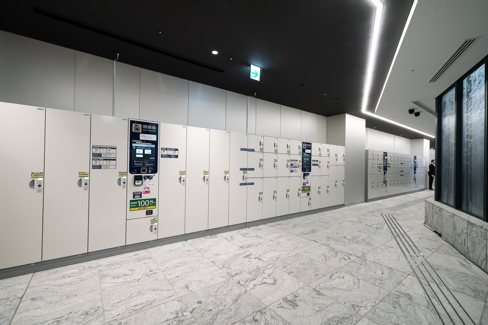 コインロッカーは、合計283個を設置している。スキーやスノーボードなど長尺物や、スーツケースに対応する大型のロッカーも用意する。トイレの数も多く、個室はスーツケースと一緒に入れるよう大きめのスペースになっていた。