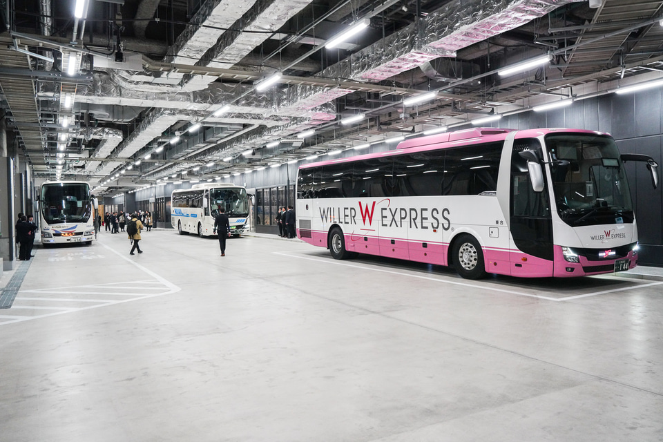 人が行き交う待合スペースとバス車路は完全に分離していて、自動ドアで乗降時のみアクセスする作りになっている。バースは7つあり、2つの待機スペースも設け、路上の入庫待ちを減らしている。バスの車路は、2階建てバスや連節バスが走行するのに十分なスペースが取られている。災害時の帰宅困難者受け入れスペースとしての活用も想定しているとのこと。