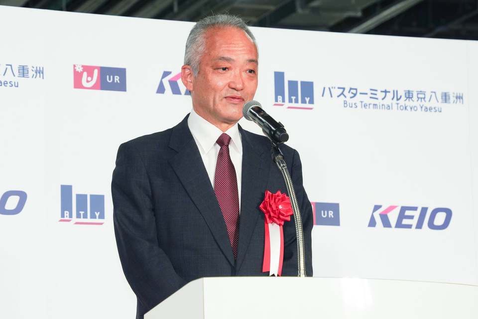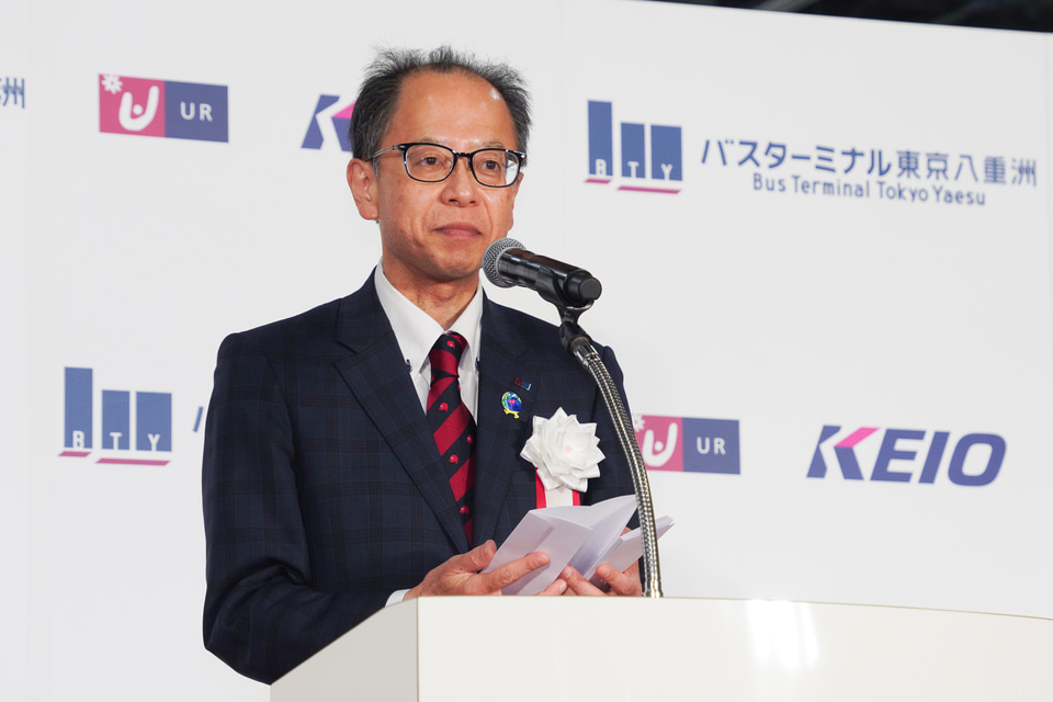 また、バス事業がコロナ禍により大きな打撃を受け、高速バス業界は回復中ではあるが、以前の状態にまで戻り切っていないという状況であること、さらに人口減少により一般路線バスの経営がきわめて深刻であることといった現状報告があり、高速バスが経営を支えているとしていた。こういった現状を踏まえ、「このバスターミナル東京八重洲を効率的に運営し、多くのお客さまにご利用をいただくことにより、日本のバス業界のさらなる発展に貢献できるよう努力をしていきたい」と述べた。