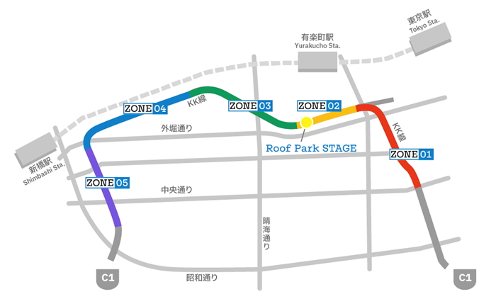 KK線では、日本橋区間の地下化事業に伴い、クルマのための道路から歩行者中心の公共的空間へ生まれ変わるための再開発を実施中。Roof Park Fes&Walkは再開発後の“未来の歩行者空間”を体感できるイベントで、今回が2回目の開催となる。