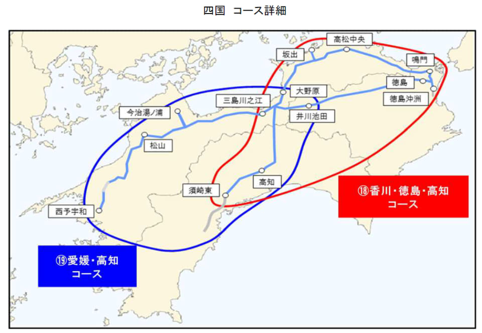 対象エリア: 高松道、松山道、徳島道、高知道、徳島南部道