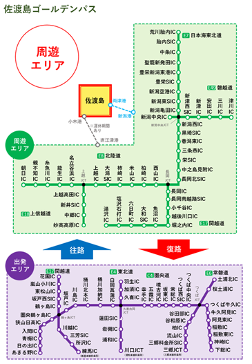 今回のリニューアルでは、新潟県内の高速道路全区間が周遊エリアとなり、佐渡島だけでなく県内観光も楽しみやすくなった。また、圏央道の利用可能エリア拡大に加え、東北道や常磐道の一部区間にも対応。埼玉県・茨城県・千葉県からのアクセス性が向上している。