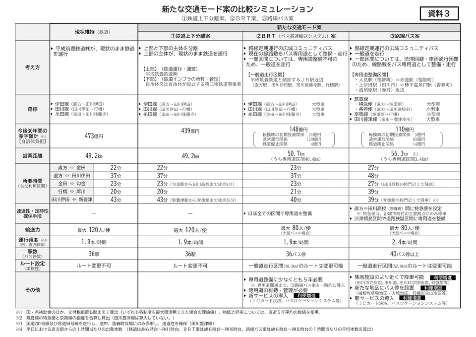 協議会では、代替交通として路線バスのほか、鉄道上下分離案やBRT案も検討。大きな方向性として、このたび3案のなかから路線バス案に決定した。2026年度のなるべく早い時期に地域公共交通計画を策定するべく、引き続き議論するとしている。