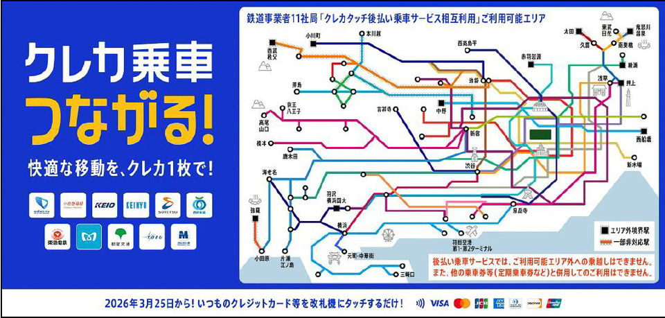 クレカタッチ乗車の相互利用を開始する関東11社局
