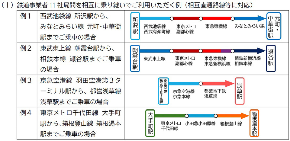 今回、相互利用に参加した11社局の顔ぶれは以下のとおり。対象となる路線と駅は54路線729駅におよぶ。