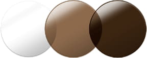 新発売の「ブルーライトカット機能付き調光レンズ」(フレームに+8800円)は、ブルーライト39%カット、紫外線100%カット、調光機能を備えたレンズで、PCやスマホで目を使う機会が多い現代のライフスタイルに対応。日差しの強い日中から、夜のスマホ使用時まで、屋内外でかけ替える手間なく着用できる。