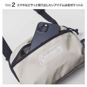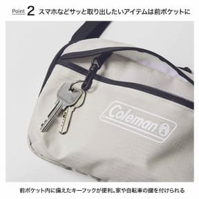 特別付録は、アウトドアブランド「Coleman(コールマン)」のアクティブに動けるショルダーバッグ。体が触れる背面は軽量なメッシュ素材で蒸れにくく、サッと取り出したいスマホなどを収納できる前ポケットと、家や自転車の鍵を付けられるキーフックも搭載している。