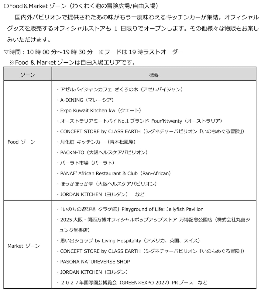 [Food&Market ゾーン]自由入場