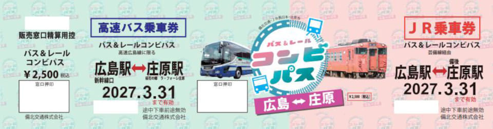 高速バス+JR芸備線「バス&レールコンビパス 広島⇔庄原」。通常より1330円お得
