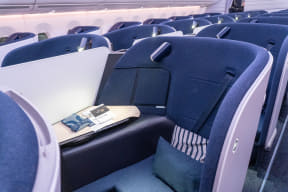 顧客満足度を高めるため、2022年10月からは日本路線に最新世代のエアバス A350-900型機を投入。ビジネスクラス・プレミアムエコノミー・エコノミークラスのすべてのキャビンを全面刷新した長距離路線の主力機で、なかでも新型ビジネスクラスシート「AirLounge(エアラウンジ)」を搭載しているのが特徴。