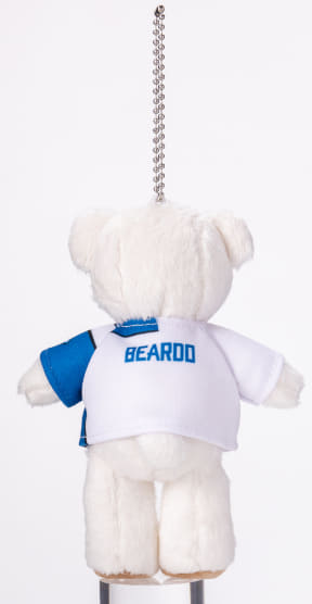 北海道日本ハムファイターズのホームユニフォームを着用した「マスコットベア・ドゥ」は、バッグなどに付けて球場に連れて行くのはもちろん、自立させたり座らせたりすることも可能な仕様。背中には「BEARDO」のロゴをあしらう。サイズは全長14cm。価格は1500円で、AIRDOが運航する全路線で取り扱う(なくなり次第終了)。