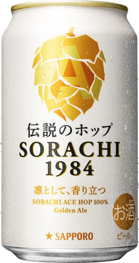 ビール「SORACHI 1984」は、世界が認めた伝説のホップ“ソラチエース”で仕込んだ350mL缶。アメリカ産に加え、上富良野町産と東北産のソラチエースも一部使用しており、ヒノキやレモングラスを思わせる爽やかな香りと、心地よい余韻が特徴という。