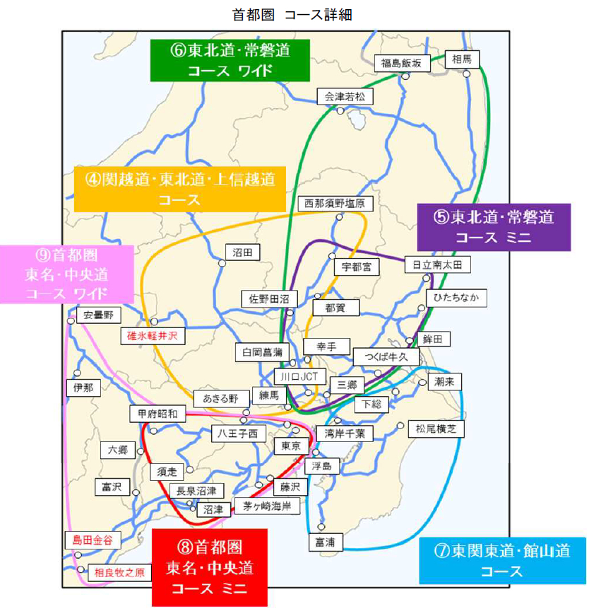 対象エリア: 東北道、関越道、上信越道、北関東道、外環道、圏央道