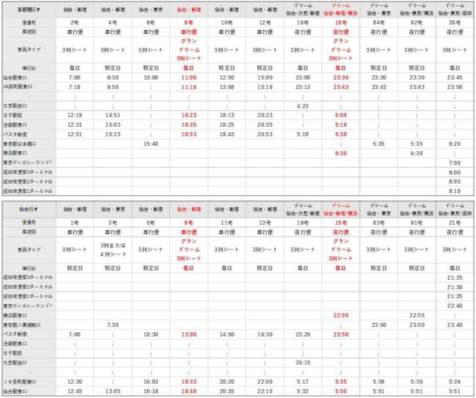 ジェイアールバス東北は、4月1日から仙台~首都圏線の一部便を「グランドリーム」車両で運行する。