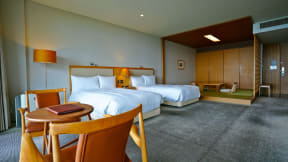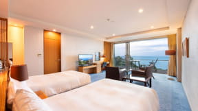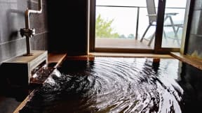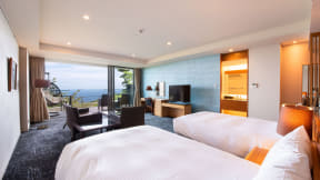 また、広さ100m2のテラスに、100%源泉かけ流し露天風呂、ゆりかごチェア、テーブルなどを設置した「迎賓館露天風呂付ガーデンスィートオーシャンビュー」もセール対象。通常価格は1人あたり4万4000円~(1室2名利用の場合)。