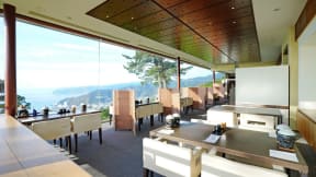 夕食は、熱海の美しい景色を望むレストラン「百山茶寮」で近郊獲れの海の幸・山の幸を使った懐石料理。朝食は、地元産の干物や自分で作って味わう宿の名物「百山豆腐」などの和食を提供する。