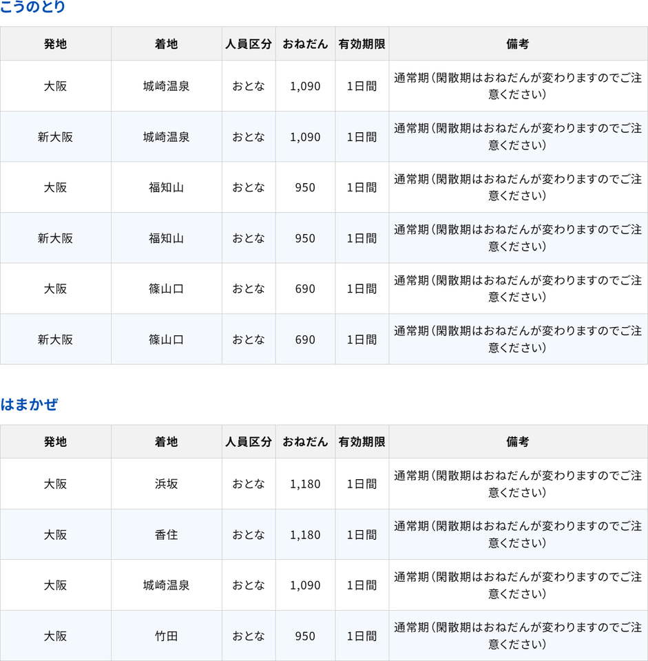 [大阪・新大阪~城崎温泉]1090ポイント(通常2730円)