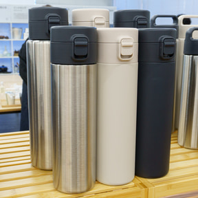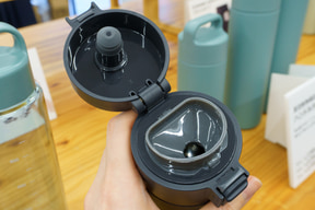 手入れがしやすいパッキン一体型の蓋を備えるハンドルタイプとフラットタイプ、片手で飲みやすいワンタッチタイプの3アイテムを展開している。口径がすべて同じ大きさになっているので、蓋と本体をそれぞれ入れ替えても使えるとのこと。