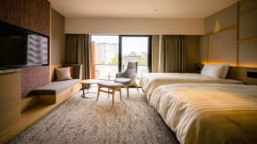 自然豊かな森に囲まれた温泉リゾート。湯畑からはクルマで約5分とやや離れているが、標高1200mの避暑地で非日常を味わう滞在はこれからの季節ならでは。