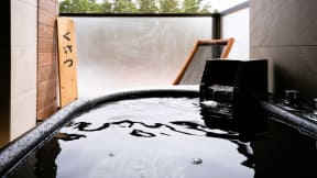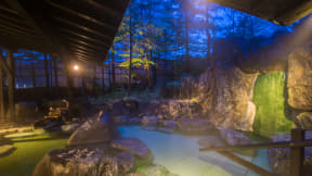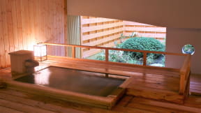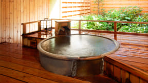 大浴場には源泉かけ流しの内湯と、高原の空気が気持ちいい露天風呂、サウナなどあり、家族でプライベート湯浴みを満喫できる貸切露天風呂も複数備えている。