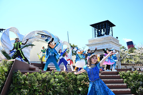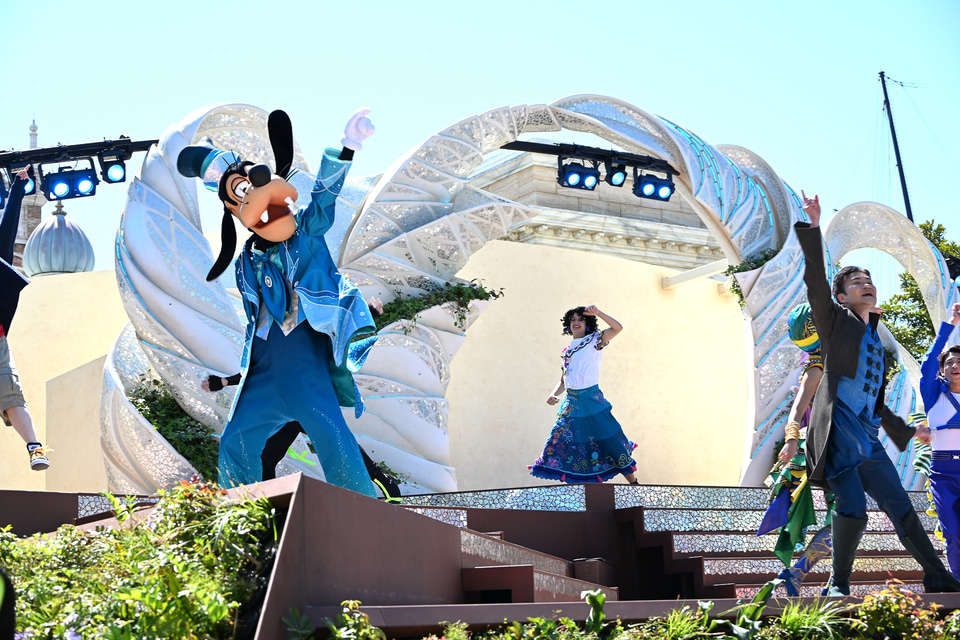 サバンナの大地を感じるようなリズム、ヨーロッパのお祭りを感じる愛らしい舞踊、さらに日本らしさあふれる瞬間など、ディズニーキャラクターたちと世界、そして音楽の融合を約25分間楽しめる。