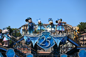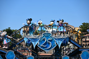 ミッキーマウスの呼びかけにより、ゲストと一緒に25へカウントアップ! 往年の年末年始のカウントダウンを彷彿させる興奮が味わえる。さらに、東京ディズニーシーの各テーマポートからもキャストが駆けつけ、25周年のテーマソング「Come Join the Jubilee」が響くなか、お祝い気分も最高潮に! ぜひ、パークを訪れたなら、体験&鑑賞をお勧めしたいプログラムとなっていた。
