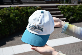 さらに、さりげなく“ジュビリーブルー”をコーデに取り入れるなら、スタイリッシュなアイテムもお勧め。中央の白く抜かれたラインとロゴが印象的なTシャツ(4500円)や、キャップ(3400円)でスポーティなスタイルができあがる。