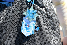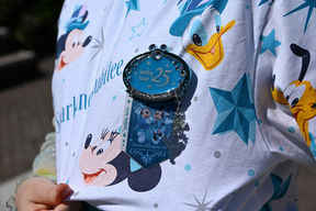 もちろんいずれのコーデでも外せないのが、25周年をお祝いするキーアイテム「ジュビリーバッジ」。自分好みにカスタマイズしてオリジナルアイテムが制作できるのだ。身につけグッズとして、パーク滞在中は胸元に。さらにバッグにとお祝い気分を気軽にプラスできる。