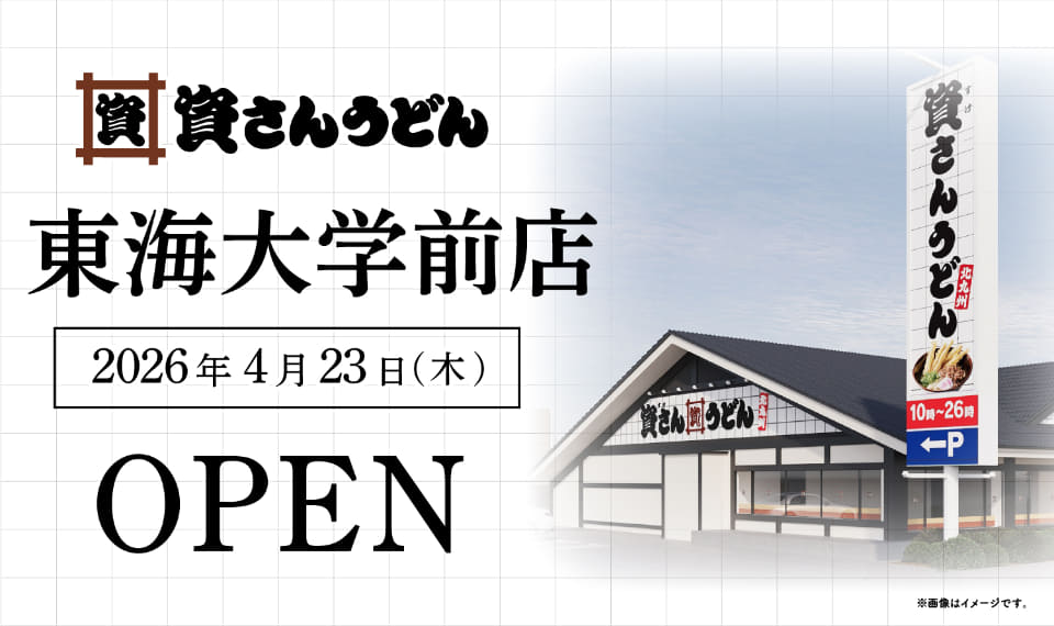 資さんは、「資さんうどん 東海大学前店」(神奈川県平塚市南金目350-1)を4月23日10時にオープンする。
