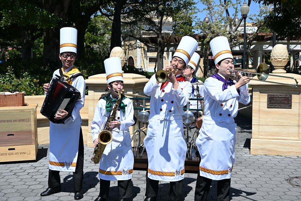 音楽好きな料理人たちが“食”にまつわる楽曲を奏でる「ザ・グルーヴィ・ジャミン・シェフズ」はバンド編成。演奏のフルコースをゲストに振る舞ってくれる。ディズニー&ピクサー映画「レミーのおいしいレストラン」の楽曲や、ディズニー映画「美女と野獣」の楽曲「Be Our Guest」など、“食”にまつわる名曲を披露する。