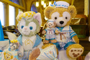 25周年のエンタテイメントプログラム「スパークリング・ジュビリー・セレブレーション」(ハーバーショー)には、ダッフィーとシェリーメイが出演。今回の展示にはなかったが、その衣装姿を再現した「ぬいぐるみバッジ」(各2800円)の販売も予定している。