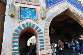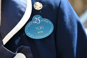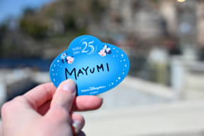 アニバーサリーイベント中は、スペシャルデザインのシールを配布。25周年ロゴにディズニーキャラクターが描かれたデザインを採用しており、キャストのネームタグと同じシェイプ&近しいデザインになっている。