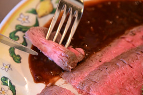 ・ローストビーフ、マッシュルーム入りデミグラスソース