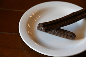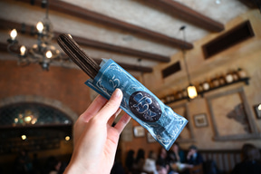 定番のミッキーチュロス(650円)には、クッキー&クリーム味が初登場。カリッと食感のココア生地には、ミルククリームがたっぷり。パッケージも25周年仕様だ。