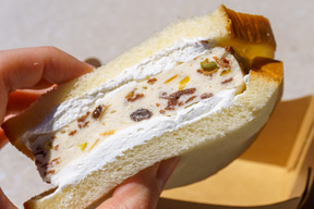 そのほか、山崎製パンの食パン・ロイヤルブレッドを使用した「ナッツとドライフルーツのクリームサンド」(650円、ドックサイドダイナー)もいただいた。