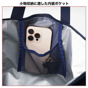 保冷効果のある内装なので、冷たいドリンクや保冷剤を携帯したい夏のお出かけや普段使いのバッグとしても活用できる。外側と内側にはメッシュポケットを搭載しており、サッと取り出したいスマホやハンディファンなどを収納可能。