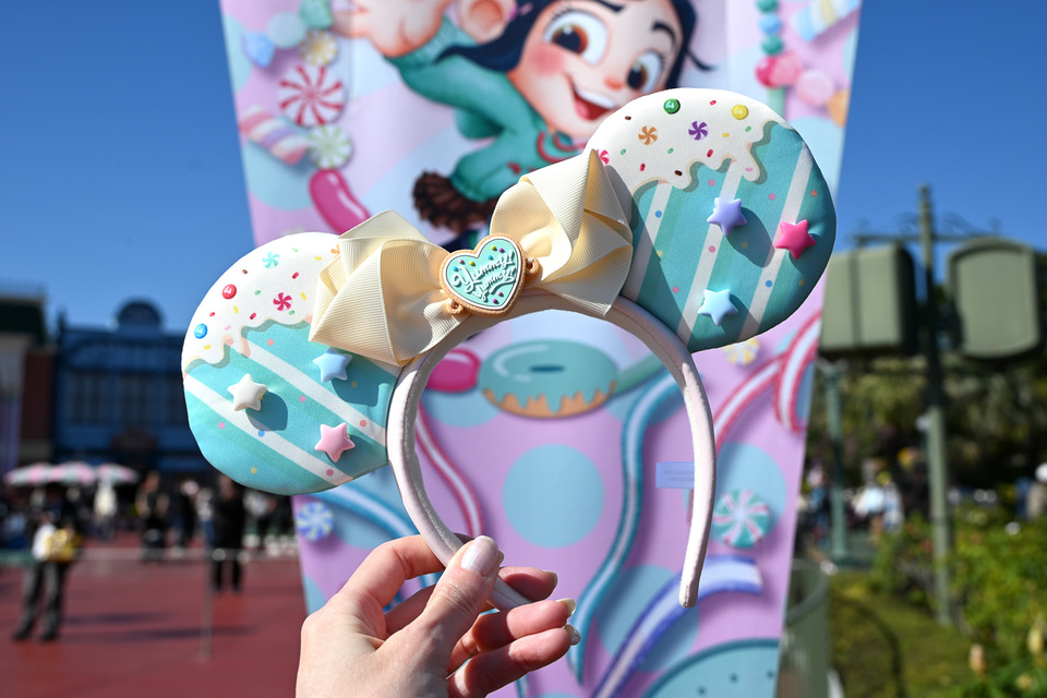 パークでイベントへの没入感をより盛り上げるアイテムといえば、身につけグッズ。新作は映画「シュガー・ラッシュ」同様にお菓子の世界観が溢れた品々が目白押し。