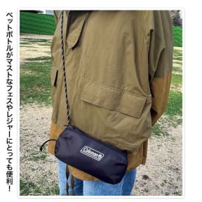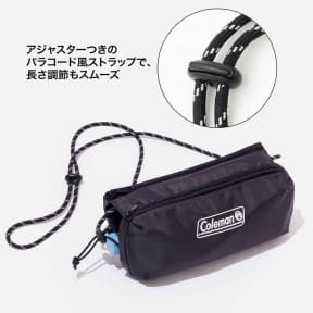 サイズは約25×6×10cm(幅×奥行×高さ)。ボトルを安定させるため内側には滑りにくい素材を採用しており、ホルダー部分はメッシュ仕様。コールマンロゴが映えるブラック地に、アジャスター付きのパラコード風ストラップを組み合わせたクールなデザインも特徴という。