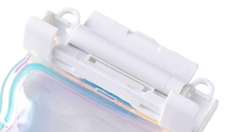 しっかり閉じて水の浸入を防ぎつつも、必要なときには素早く開け閉めできるワンタッチクリップを採用しており、ケースに入れたままタッチパネルの操作や動画視聴、クリアな写真・動画撮影が可能。Face IDと顔認証にも対応する。