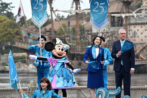 また「東京ディズニーリゾートに心を寄せてくださるすべてのみなさまとこのお祝いの時を喜びを共に分かちあいたいと思います。パーク中を“ジュビリーブルー”で染め上げ、25周年の1年間を盛大にお祝いしていきましょう!」と呼びかけた。